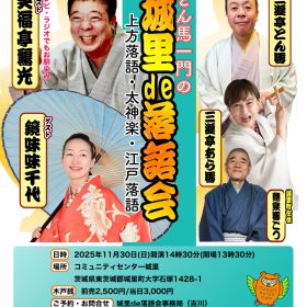 【日時】 11月30日(日) 13:30開場、14:30開演 【場所】コミュニティセンター城里 【木戸銭】前売り2,500円、当日3,000円 【詳細…